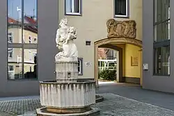 Brunnen mit Sockelrelief, Bronzestatue und Becken aus Wöllersdorfer Stein. | Johann Martin Fischer | 1798 | Die Brunnenschale stammt von Anfang des 17. Jahrhunderts und stand ursprünglich im Haus Franziskanerplatz 6. |