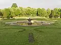 Steinbrunnen mit zwei sitzenden Figuren | In der Mitte des Parks | ||