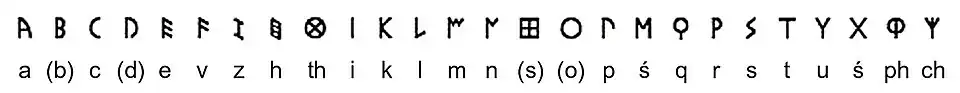Dem Schreiber ist bei der Niederschrift der Buchstaben vermutlich ein Fehler unterlaufen, da der Buchstabe S zweimal auftritt, an Position 21 und an Position 24. Andere Abecedarien aus dieser Zeit zeigen an Position 24 dagegen den Buchstaben X, sodass ein Schreibfehler naheliegt. Erfahrungsgemäß lässt sich der Anfang eines Alphabets besser memorieren als der Schluss.
