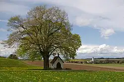 Der nach Süden gerichtete kleine Bau hat einen dreiseitigen Schluss, ein Kastengesims und außen eine gefasste, stichbogige, innen rechteckige Tür. An den Längswänden befindet sich je ein kleines Rundbogenfenster, innen in den Nordecken am Apsisansatz ist zwischen Wandvorsprüngen der gemauerte Altarstipes eingefügt. Die gefelderte Holzdecke ist im neugotischen Stil gehalten.