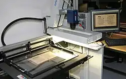 - ↑ Linear Book Scanner (12. November 2012, Google Tech Talk, Youtube-Film)