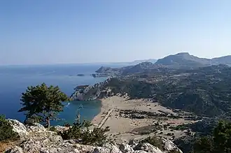 Der Strand in der Bucht von Tsambika wird häufig zu den schönsten Stränden der Insel gezählt.[1][2]