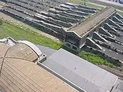 Die Mehrzahl der Gebäude entstanden als Stahlskelettbau im Art-déco-Stil mit braunen Backsteinfassaden, Granitsockeln sowie Ornamenten aus Sandstein und Beton. Die Fenster wurden in vertikal verlaufenden Nischen angeordnet. Bis auf die Eilguthalle datieren alle Bauten von 1927 bis 1930 und wurden von den Architekten Fellheimer and Wagner entworfen.[3] Der Komplex steht bis auf Teile des Empfangsgebäudes vollständig leer und ist unterschiedlich stark verfallen.
