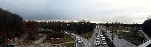 Von Mai 2017 bis Dezember 2020 wurden zirka neun Kilometer der A 96 zwischen den Anschlussstellen Germering Süd und Oberpfaffenhofen von vier auf sechs Fahrstreifen erweitert. Hierfür investierte die Bundesrepublik Deutschland als Baulastträger 131 Mio. Euro, wovon zwei Drittel in die Errichtung von Lärmschutzgalerien flossen.[2][3][4]