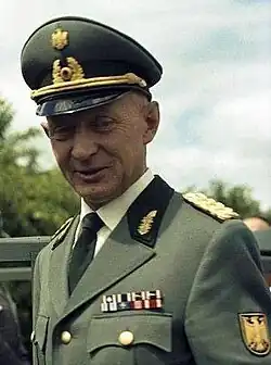 - ↑ Vgl. Meyer, Georg. Zur inneren Entwicklung der Bundeswehr bis 1960/61, in: Ehlert, Hans / Greiner, Christian / Meyer, Georg u. a. (Hrsg.). Die NATO-Option. Anfänge westdeutscher Sicherheitspolitik Band 3. Herausgegeben vom Militärgeschichtlichen Forschungsamt. München 1993. S. 920.