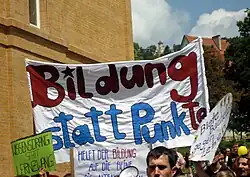 - ↑ http://www.bildungsstreik2009-hd.de/old/sites/default/files/Ausformulierte_Forderungen.pdf (Seite nicht mehr abrufbar, festgestellt im April 2018. Suche in Webarchiven) Info: Der Link wurde automatisch als defekt markiert. Bitte prüfe den Link gemäß Anleitung und entferne dann diesen Hinweis.