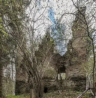 Von der mittelalterlichen Burg sind nur noch Reste eines quadratischen Turms mit einer Seitenlänge von etwa sieben Metern und der sich südöstlich an den Turm anschließenden Kapelle erhalten.