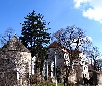 Reste der Burg in Abensberg (im Vordergrund) | ||