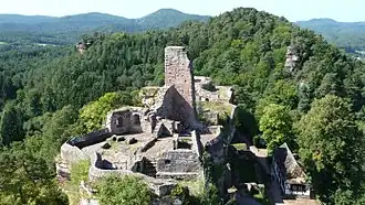 Burg Alt-Dahn aus der Vogelperspektive | ||