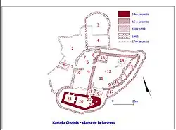 In den 1640er Jahren, als die Burg von den Kaiserlichen eingenommen wurde, erfolgten weitere Befestigungen. Im nordwestlichen Teil entstand eine Bastion, die die nächste Linie von Verteidigungsmauern sowie die Torbastei auf der westlichen Seite bildete. Auf dem oben erwähnten Burghof wurde neben dem Haupttor ein Quartier für den Kommandanten errichtet.