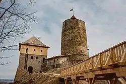 Die erste Burg mit gemaustem Bergfried entstand hier im 13. Jahrhundert als Zollstation für Waren, die aus Ungarn über den Dunajec nach Polen gebracht wurden. Die Burg wurde im 14. und 15. Jahrhundert ausgebaut. Sie war Sitz der örtlichen Starostei und eines Landgerichts. Die Burg wurde während der Kriege des 17. Jahrhunderts verlassen, diente jedoch noch bis 1772 als Gefängnis. Seither war die Ruine dem Verfall preisgegeben und wurde von den Anwohnern als Steinbruch genutzt.