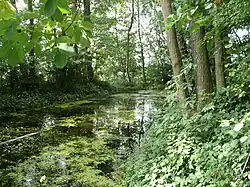 Der Burgstall der ehemaligen Niederungsburg befindet sich inmitten landwirtschaftlich genutzter Flächen auf dem nur leicht abfallenden Nordrand des Tiefentales, das nach westsüdwestlichen Verlauf in das Tal der Blaubach mündet. Der Durchmesser der gesamten fast kreisrunden Anlage beträgt etwa 60 Meter und besteht aus einem zentralen Kernhügel, der von einem Wassergraben mit Außenwall umgeben ist. Ein Vorburgbereich lässt sich heute nicht mehr erkennen.