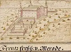 Sie war Stammsitz eines gleichnamigen Adelsgeschlechts und kam im 14. Jahrhundert an eine Linie der Familie von Merode, die bis zu ihrem Aussterben 1826 Besitzerin blieb. Von 1840 bis ins 20. Jahrhundert war die Industriellenfamilie Cockerill Eigentümerin des Anwesens. Ihr gehörte auch das nur etwa einen Kilometer nordwestlich liegende Haus Palant. Nach starken Beschädigungen im Zweiten Weltkrieg wurde die Anlage mit Ausnahme der südlichen Vorburg niedergelegt.