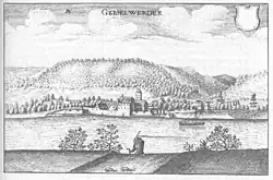 Schon im 11. Jahrhundert befand sich auf der ehemaligen Weserinsel „Gieselwerder“ eine kleine Wasserburg mit Herrenhaus, Bergfried und wenigen Nebengebäuden.