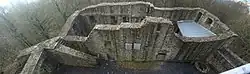 In der Mitte des Burghofes stehen noch die Reste des rechteckigen Bergfrieds. Von dort aus hat man einen Rundblick über die Kuppenrhön, den Seulingswald und den Knüll. Auf dem Bergfried befindet sich ein trigonometrischer Punkt.