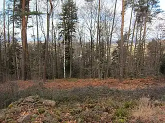 Burg Heidenkeller – Wall im Westen der Anlage | ||