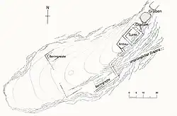 Zeichnung der Vorburg nach Johann Rudolf Rahn, 1894 -