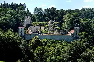 Von der Ringmauer der Burg des 13./14. Jahrhunderts ist nur die Südseite mit dem Torbau teilweise erhalten. Am Südwesteck erhebt sich die Schildmauer des Turmhauses der zweiten Burg über den Graben. Das Bauwerk ist knapp 10 Meter lang und noch 7 bis 8 Meter hoch, die Mauerstärke beträgt ca. 2,2 Meter. Die Reste eines gewölbten Ganges in 5 Metern Höhe und sechs Öffnungen auf der Feldseite deuten auf ein vorgehängtes hölzernes Kampfhaus oder eine Hurdengalerie hin. Darunter erhob sich später der Erweiterungsbau der Herren von Riedheim (Umfassungsmauern teilweise erhalten).