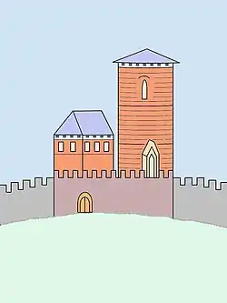 Nach einem Kupferstich von Braun und Hogenberg bestand die in Cochem als Kempelen bezeichnete Burganlage aus einem schweren Rundturm und einem angebauten rechteckigen Haus mit abgewalmtem Satteldach. Die Burg lag westlich der Stadt in einem Knick der Stadtmauer, die gegen das freie Gelände innerhalb der Stadtmauer nochmals abgeschlossen war und worin sich ein breites Tor befand. Früher nahm man an, dass der massive runde Turm eine römische Warte gewesen sei, da man auf einem ca. 200 m südwestlich gelegenen Hügel, dem Tummelchen (von lateinisch tumulus für Grabhügel), römische Gräber, Waffen und Münzen fand.[10] Der Turm gehörte jedoch einer kleinen Burganlage an und wurde später in die Stadtbefestigung mit einbezogen. Nachdem das Anwesen inzwischen verlassen worden war und sich in Cochem eine Initiative zur Gründung eines Klosters gebildet hatte, wurde es 1623 vom Kurfürst Lothar von Metternich den Kapuzinern Vincenz von Vianden und Lucas von Maring nach Vermittlung durch Pater Cornelius von Enscheid als Geschenk übergeben. Noch im gleichen Jahr kamen an das Areal angrenzende Gärten ebenfalls in Form einer Schenkung hinzu.[11][12] Das auch „castrum“ Kemplon genannte Anwesen wurde 1625 gemeinsam mit einem Teil der Stadtmauer abgerissen; die Steine wurden beim Neubau des Cochemer Kapuzinerklosters wiederverwendet.[1][5]