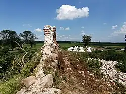 Die Ruine von Burg Kremzow befindet sich im Überschwemmungsgebiet der Ihna nördlich von Krępcewo (Kremzow) in Hinterpommern, Polen.