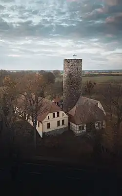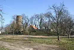 ![]() Bergfried der Loburg, von der Straße aus gesehen | |