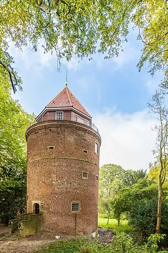 Graf Edzard I. ließ um 1498 den heute noch erhaltenen Rundturm erbauen. Edzards Beteiligung an der Sächsischen Fehde führte dazu, dass die Burg von einer Koalition von Fürsten um Georg von Sachsen erobert und schließlich drei Jahre besetzt wurde.