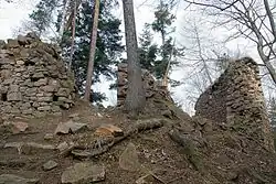 Die Innenburg hatte einen trapezförmigen Grundriss, der aus dem unregelmäßigen Felsgelände resultierte. Der Zugang erfolgte von der Vorburg auf einer Brücke über den inneren Graben. Das Eingangstor zur Innenburg war durch einen mächtigen rechteckigen Wohnturm mit einer Mauerlänge von 8,5 × 11 m geschützt, dessen obere Stockwerke als Wohnräume dienten. Im westlichen Teil stand an der Burgmauer der Palas. Der Turm und der Palas waren mit Mauern verbunden, zwischen denen sich ein kleiner Innenhof befand.