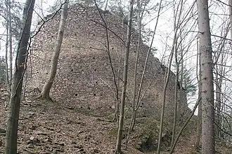 Die Burg war gegen Norden und Westen durch den steilen Felshang zu den Tälern von Chrudimka und Libáňský potok geschützt. Im Südosten, wo der Sporn in die Hochebene überging, befanden sich stärkere Befestigungsanlagen mit einem tiefen Burggraben. Die eigentliche Kernburg lag auf dem äußersten Vorsprung des Sporns, den südlichen Teil der Burganlage nahm die Vorburg ein.