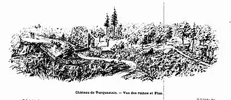 ![]() Ansicht der Ruine (19. Jh.) | ||