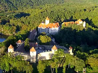 Burg Veveří (deutsch Burg Eichhorn) ist eine Burg in Südmähren, Tschechien. Sie liegt auf dem Gebiet der Großstadt Brünn (tschechisch Brno), 12 km nordwestlich vom Stadtkern am Brünner Stausee.