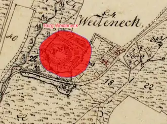 Lageplan von Burg Weideneck auf dem Urkataster von Bayern | ||