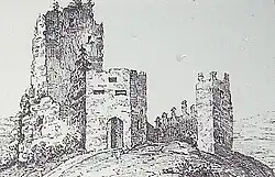 ![]() Der erhaltene Torbau (Außenseite) | ||