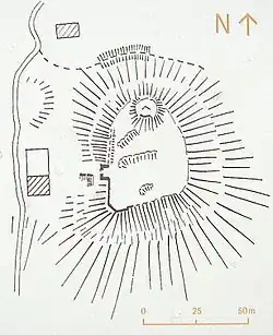 Die höchste Hügelkuppe im Norden trug den Bergfried, von dem um 1825 noch die Südwand aufrecht stand. Das Gelände ist eingezäunt und unzugänglich. Nach der Planaufnahme bei Nessler (1985) sind hier noch geringe Fundamentspuren erhalten.