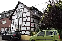 Die Burg liegt auf einer Anhöhe und bot einst strategische Vorteile.[1] Historische Berichte erwähnen einen unterirdischen Gang zum Rhein, dessen Existenz jedoch nicht belegt ist.[2] Die erhaltenen Grundmauern und Kellergewölbe stammen aus dem 11. oder 12. Jahrhundert. Der noch teilweise erhaltene Eckturm zeugt von der ursprünglichen Befestigungsfunktion der Anlage. Im 1840 erfolgte die Teilabtragung des runden Turms und des Fachwerkoberbaus.[1]