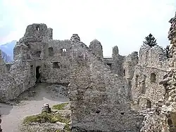 - Über Unterpinswang in Tirol liegt die kleine Höhlenburg Loch, auch hier wurden die wenigen Mauerreste sachgerecht konserviert.
