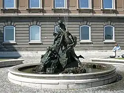 Auf der Savoyen-Terrasse findet man unweit der Turul-Figur außerdem den Brunnen der fischenden Kinder von Károly Senyei.