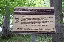 Die mittelalterliche Anlage war verhältnismäßig klein und bestand (nach Grabungsbefund) aus einem Bergfried, einem Haupt- und einem Nebenhaus sowie einer Umfassungsmauer. Die Anlage nutzte die bereits vorhandenen Befestigungsgräben und Wallreste. Die Toranlage wird im Süden vermutet, wo auch heute noch ein Wirtschaftsweg zum Berg führt. Am Westhang des Burgberges befand sich eine Quelle, die auf dem Eselsweg von der Burgbesatzung genutzt wurde.