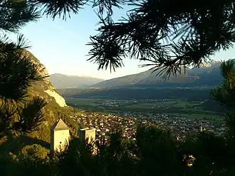 Von der einst ausgedehnten Burganlage stehen noch zwei weithin sichtbare quadratische Türme. Der mit Verputz versehene Bergfried stammt aus dem 13. Jahrhundert; der besser erhaltene obere Weinecker-Turm wurde 1483 erbaut und besitzt noch Reste einer Ringmauer.[3] Die Burgruine liegt auf einem schmalen Felsgrat, der nach Süden steil zum Inntal und gegen Osten fast senkrecht zur Schlossbergklamm hin abfällt.