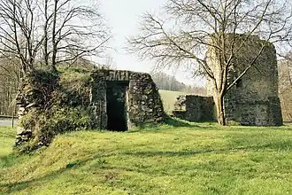 Burgruine Herrenbröl – Blick von Osten, im Vordergrund der Zugang zum Gewölbekeller | ||