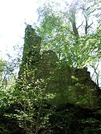Von der Burganlage sind noch Reste des Wohnturms erhalten. Der Bergfried hatte eine Grundfläche von 10 mal 15 Meter und eine Mauerstärke von 1,8 bis 2,4 Meter.