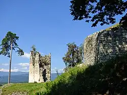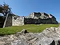 Von der ehemals weitläufigen Burganlage sind an der Nordseite noch Reste des romanischen Bergfrieds, den man Ende des 19. Jahrhunderts wegen seiner angeblichen Baufälligkeit vergebens zu sprengen versuchte, sowie Teile der äußeren Ringmauer erhalten.