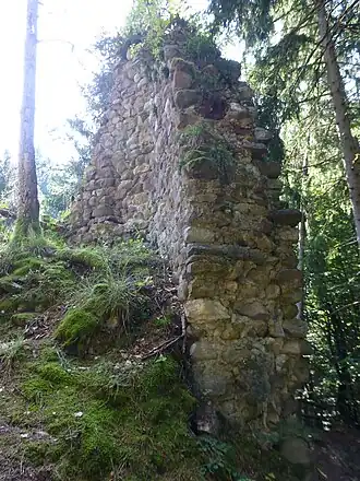 Es finden sich im Wald Mauerreste aus Feldsteinmauerwerk in regelmäßiger Schichtung. Die Burgruine wurde 1981 unter Denkmalschutz gestellt.[4]