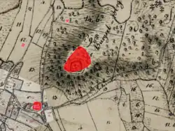 Von der ehemaligen Burganlage haben sich nur noch Erdanlagen in Form einer viereckigen Umwallung erhalten.[1]