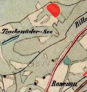 Der abgegangene Burgstall Rosenau liegt unmittelbar an dem früheren Taubenödersee, was darauf schließen lässt, dass dies eine ehemalige Wasserburg war. Heute schließt hier ein Weihergebiet an, das aus ehemaligen Kiesgruben entstanden ist.