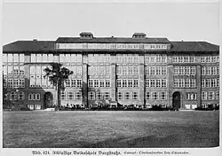 In der Hausnummer 33 bis 35 auf Borgfelder Seite befindet sich das Schulgebäude der Schule Burgstraße. Es wurde 1920/21 nach Plänen von Fritz Schumacher für die damalige Volksschule Burgstraße, die unter anderem von 1925 bis 1929 von Loki Schmidt besucht wurde, errichtet. Nach dem Zweiten Weltkrieg wurden zusätzlich zur Volksschule eine Hilfsschule und – bis zum Umzug in die Hammer Straße 1964 – die Hamburger Gehörlosenschule, die zuvor von 1873 bis zur Zerstörung 1943 quasi „um die Ecke“ in der Bürgerweide residierte, mit aufgenommen.[1][2] Nachdem die Haupt- und Realschule Burgstraße geschlossen wurde, nutzte ab 1978 die Berufsschule für Friseure das Gebäude. Gegen die Schließung der Haupt- und Realschule hatte es erhebliche Proteste bis hin zum Schulstreik gegeben.[3][4][5][6] Heute befindet sich in dem denkmalgeschützten Bauwerk die Berufliche Schule Burgstraße, die außer für Friseure auch für Kosmetiker, Maskenbildner, die generalistische Pflegeausbildung nach dem Pflegeberufereformgesetz und die duale Ausbildungsvorbereitung für Jugendliche ohne Ausbildungsplatz zuständig ist. Auf dem Schulhof befand sich in der Nachkriegszeit ein Nissenhüttenlager. Dies führte zu mehreren Protestaktionen von Eltern, die die Räumung forderten.[7][8] Die alte Turnhalle der Schule, die bereits seit 1915 vom HTB 62 genutzt wurde,[9] wurde zur Mediathek und Cafeteria umgebaut und stattdessen eine unterirdische neue Turnhalle erbaut.[10]