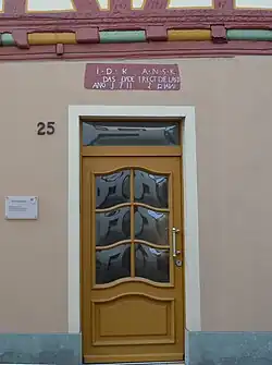 Um 1800 waren hier das Rathaus, die Lateinschule und die Apotheke untergebracht. Das Krüppelwalmdach mit kleinen Zierspitzen stammt aus dieser Zeit. Danach befand sich das Gasthaus Zur Traube in dem Gebäude.