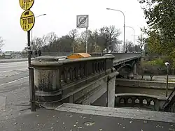 Am stadtseitigen Widerlager ist neben der Kanalstraßen der mit einer Schmuckplatte gekennzeichnete Grundstein des Elbe-Trave-Kanals eingelassen. Am Nordende der Brücke, zum Burgfeld hin, sind auf Postamenten zwei 1913 von Fritz Behn für den Weinhändler Heinrich Leo Behncke geschaffene und 1931 dort aufgestellte Löwenstatuen platziert.