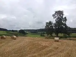 Weniger als 30 % der Gesamtfläche sind bewaldet, es ist ein großer Anteil der große Waldinsel des nördlichen Forsts Wald am Nordrand, ein Streifen des westlichen Forsts Wald im Westen und deutlich kleinere Waldinselschnipsel im Süden.