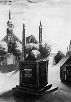 Das für die Marstallherren auf dem Koberg errichtete, nach dem dort tagenden Gericht als Burrecht bekannte Gebäude ist auf der Stadtansicht des Elias Diebel von 1552 zu erkennen: Auf einem niedrigen zweistufigen Sockel befand sich ein Pavillon mit quadratischem Grundriss und Pyramidendach, auf dessen Spitze sich eine Wetterfahne erhob.