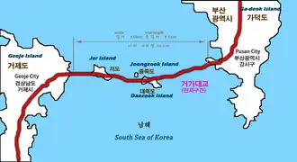 | Offizieller Name | Busan – Geoje Fixed Link, Geoga Bridge, kor. 거가대교 | |
